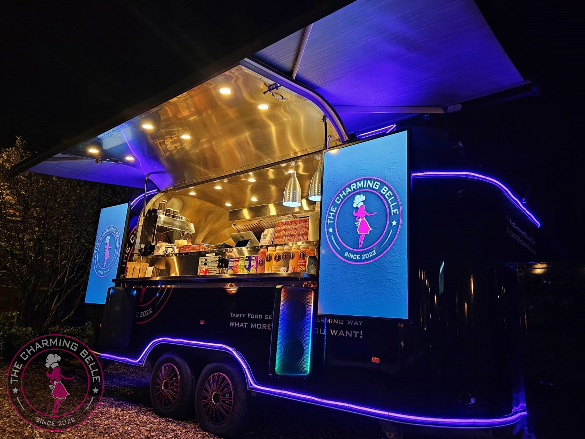Our approach is simple: great flavours, fresh ingredients, and reliable service. No fuss, just food done properly. Our stylish, modern trailer even comes with built-in LCD displays, letting us showcase your company logo, branding, or custom graphics to match your event perfectly. Since we started, we’ve had the pleasure of working at everything from intimate private celebrations to large-scale productions, partnering with big names like Google, Amazon, Coca-Cola, HelloFresh, Costco, Porsche, Warner Bros. Studios Leavesden, the Oxford Half Marathon, and many others. Being family-run means we keep things personal. We genuinely care about the food we serve, the service we provide, and the people we work with. Whether it’s a wedding, a family get-together, a busy film set, a high-energy corporate or sports event, or an exclusive VIP event, we’re experienced at working to tight schedules while delivering consistently delicious food. At The Charming Belle, it’s all about friendly service, solid food, and helping make every event memorable — with a trailer that looks just as good as the food tastes.